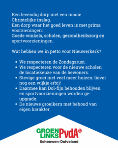De Dorpsraad Nieuwerkerk heeft alle politieke partijen gevraagd wat zij willen betekenen voor Nieuwerkerk en waar zij voor staan als het gaat om de toekomst van het dorp. Alle partijen hebben inmiddels op deze oproep gereageerd.